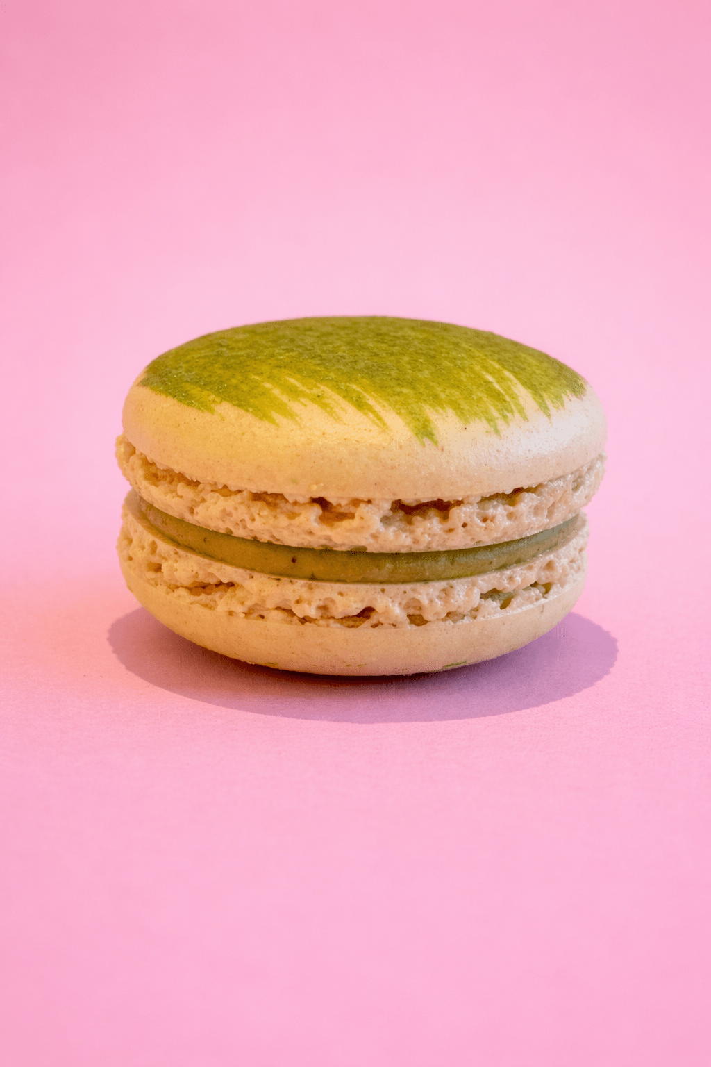 Crème pistache parfumée, riche et élégante, pour un macaron raffiné et équilibré.