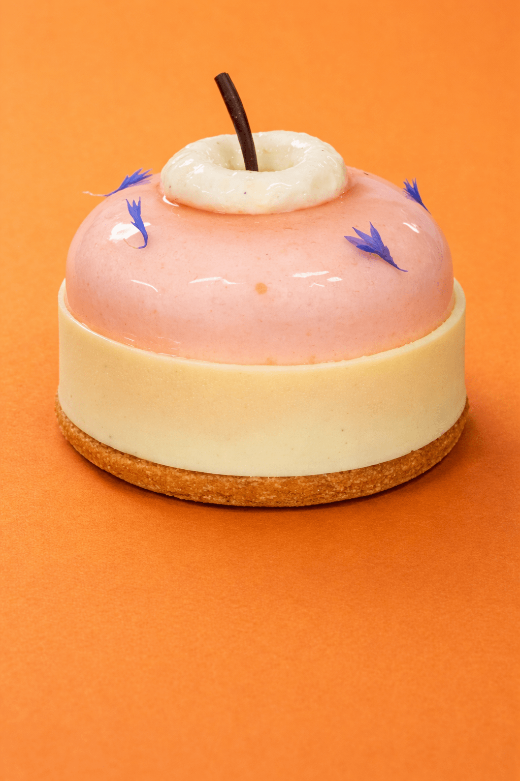 Association délicate de pommes rôties fondantes et d’un insert litchi parfumé, sur une base croustillante et biscuit moelleux.